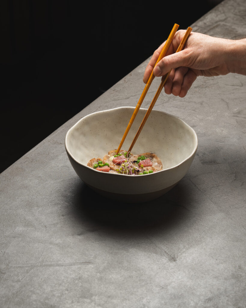 Bocado de Tartar de Atún Balfegó (con trufa y huevo de codorniz sobre nori en tempura)